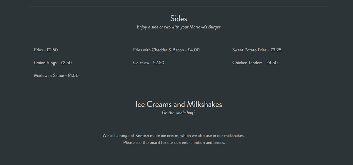 The Marlowe's Burgers - Tunbridge Wells menu is a standout feature, offering an array of juicy, perfectly cooked burgers, each one showcasing top-notch ingredients. From classic beef patties to innovative options like crispy chicken and vegetarian alternatives, there’s something for everyone. The burgers are generously portioned, with an ideal balance of flavor and texture. The accompanying sides, including hand-cut fries and crispy onion rings, complement the mains beautifully.